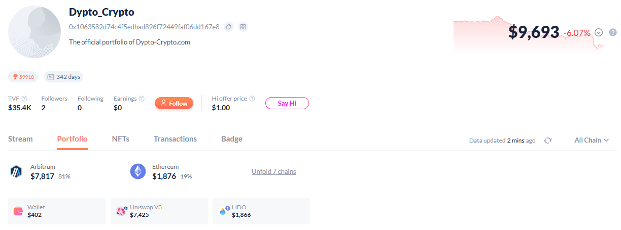 Current portfolio valuation - $9.673. Growth - Not much YTD